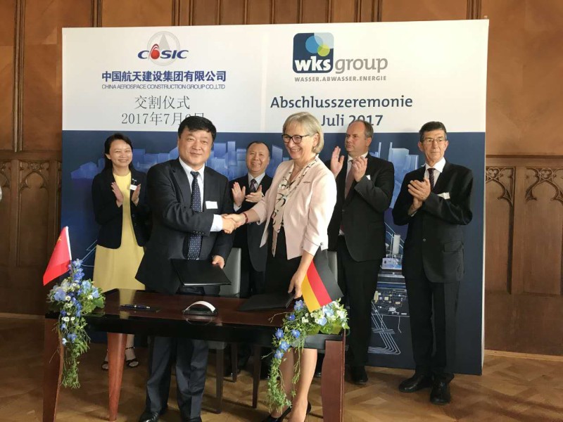 WKS公司成立于1993年,是一家提供水处理、污泥处置、机械技术、自动化、信息化工程综合解决方案,同时具备关键技术、关键设备研制生产一体化能力的复合型水务供应商,在德国乃至整个欧洲水务行业享有盛誉,是一家优秀的环保领域子系统承包商。航天建设集团在工程建设领域深耕多年,具有复杂大系统工程咨询、规划、设计和建设的综合集成能力、经验和优势,此次成功并购WKS公司,实现了强强联合、优势互补。 高红卫在交割签约仪式上发表了重要讲话。他对航天建设集团与WKS公司顺利交割表示热烈祝贺,并表示,当前,人类“衣食住行”的保障能力,已经达到满足全人类需求的水平,“安康乐知”需求正在替代“衣食住行”基本需求、成为推动“新文明时代”发展的基本动力。与此相适应,新一轮科技革命、产业革命将紧紧围绕满足人们“安康乐知”这个普遍需求展开。航天科工具有很强的复杂大系统工程的集成能力和优势,但仅有大系统工程和技术是不够的,需要环保科技领域具体的技术作支撑。wks拥有环保领域的一流技术,在工艺技术、自动化和信息化等子系统方面具有很大优势,需要航天科工以及航天建设的系统工程、土建工程能力与之融合。今天,航天建设集团与投资收购WKS公司的股权交割100%股权,实现了强强联合、优势互补,意味着航天科工在环境安全、环境修复、环境保护领域又增添了新的重要力量,使得航天科工能够为中国、德国乃至全球在环境安全、环境修复、环境保护事业,作出重大的贡献。相信航天科工一定能够在此领域,取得令中国、德国乃至全球同行瞩目的成就。