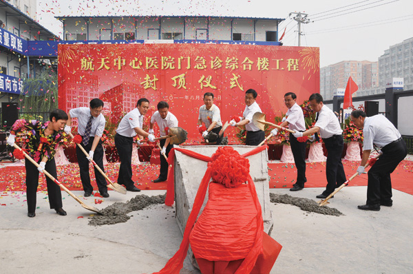 8月31日,航天中心医院门急诊综合楼工程举行了封顶仪式。航天科工二院院长宋欣;二院党委书记张连成;二院副院长付威;我院副院长余斌以及航天中心医院的领导参加了封顶仪式。我院副院长余斌和航天二院院长宋欣先后致辞。 我院副院长余斌在讲话中表示:七院的发展,离不开二院;二院的建设,也需要七院。今天成绩的取得是不易的,这正验证了开工典礼中我院所提的“确保长城杯,争创鲁班奖”的目标,兑现了对建设单位的承诺。创国家“AAA级安全文明标准化诚信工地”、创鲁班奖,是以后我单位在本工程的两个重要目标。余斌副院长鼓励大家在今后的工作中要继续加大力度、细化方案、统筹安排,通过各参建单位协同一致、共同努力,达成这两个目标,把该工程建成精品工程,为航天医疗事业的发展贡献力量。 航天二院院长宋欣在讲话中对我院以及其他相关单位在施工过程中为航天医疗事业发展所做的贡献表示感谢,对下一步施工质量也提出了要求。 讲话结束后,参加封顶仪式的领导共同挥锹装填混凝土。随着航天中心医院门急诊综合楼工程最后一罐混凝土的浇筑,工程主体结构全面封顶。航天中心医院门急诊综合楼工程在接下来的时间里,将迎来安装、装修工程施工。 (田俊杰 文 郝振山 摄) |