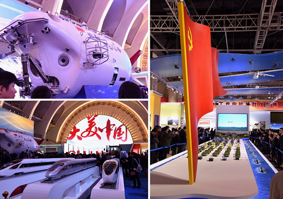 我国五年来的辉煌成就,国之重器的磅礴亮相,人机互动的非凡体验,振奋人心,许多参观者驻足细看,意犹未尽,纷纷发出了“厉害了我的国”的赞赏。