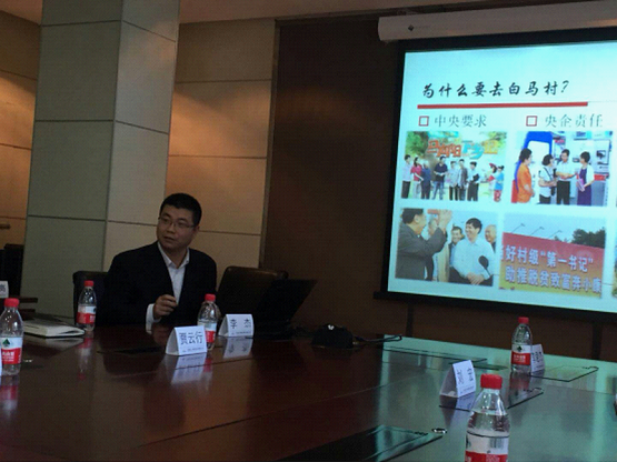 李杰结合自己驻村帮扶的经历,饱含深情地介绍了白马村的情况、航天科工定点帮扶的情况和自己的切身感受,诠释了“不忘初心、牢记使命”和“航天报国”的内涵,得到了与会人员的一致共鸣。