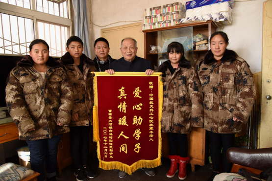 11日下午,白马村受助学子及老师,李杰、赵卫华、院党群部有关同志一同前往林家丰家中拜访。白马村师生向林家丰老人赠送了锦旗,感谢林家丰对白马村的这份爱,表示会将这种精神发扬传承下去。