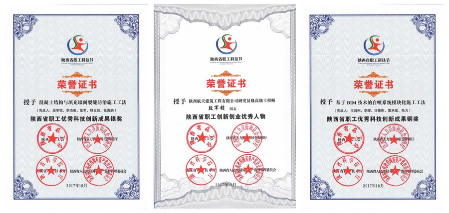 近日,由陕西省总工会、陕西省科学技术厅、陕西省人力资源和社会保障厅和陕西省人民政府国有资产监督管理委员会联合举办的第四届陕西省职工科技节活动落下帷幕。在活动中,七院陕西航天建筑工程有限公司职工创新成果再获三项省级大奖,分别是公司总工程师段军锁被授予“陕西省职工创新创业优秀人物”称号,两项创新成果混凝土结构与填充墙间裂缝防治施工工法、基于BIM技术的自喷系统模块化施工工法分获“陕西省职工优秀科技创新成果银奖”和“陕西省职工优秀科技创新成果铜奖”,这是该公司职工创新成果取得的又一新成绩。