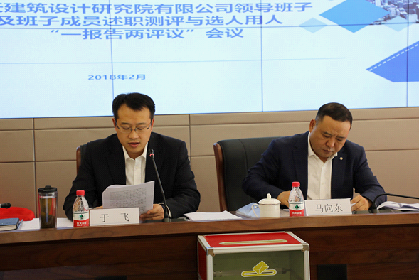 2月2日,航天建筑设计研究院有限公司召开了2017年度领导班子和领导人员年度述职测评与选人用人“一报告两评议”会议。航天设计院领导班子成员,本部各部门、直属单位、控股公司有关领导及职工代表共48人出席会议并进行评议。七院人力资源部杜峰出席会议并进行现场督导。会议由航天设计院临时党委书记、副总裁于飞主持。