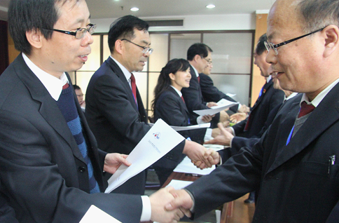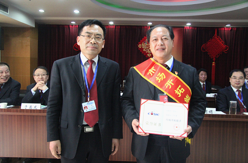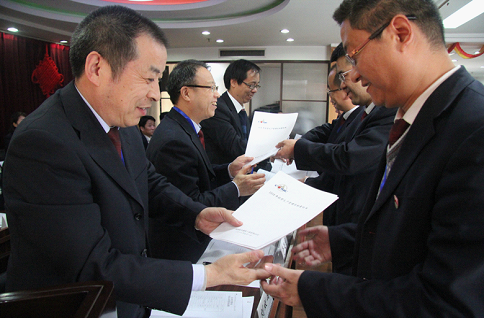会上,公司领导还向基层单位颁发了2018年经营目标责任书、党建工作责任书和反腐倡廉责任书,表彰了2017年度先进单位和个人,并为市场开拓能手佩戴绶带和颁奖、为市场开拓突出贡献者佩戴红花和颁奖、给为公司作出重大贡献项目经理颁发奖盘、佩戴绶带。