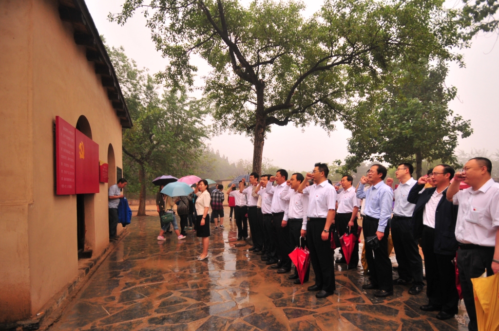 图为:重温入党誓词 进行了宣誓活动 为抓好基层组织建设年工作,提升“四强”党组织能力建设,迎接党的十八大胜利召开。5月11日至12日,科工七院党委举办了“ 弘扬西柏坡精神 永葆本色铸辉煌”主题学习活动,院党委书记高峰、院长吴宝林带领院全体党委委员、院领导及机关部长25人,前往爱国主义教育基地——西柏坡参观学习,接受革命传统和爱国主义教育,重温党中央在西柏坡创下的丰功伟绩,缅怀老一辈革命家艰苦奋斗的优良传统和作风,学习和弘扬以“两个务必”为核心的西柏坡精神。