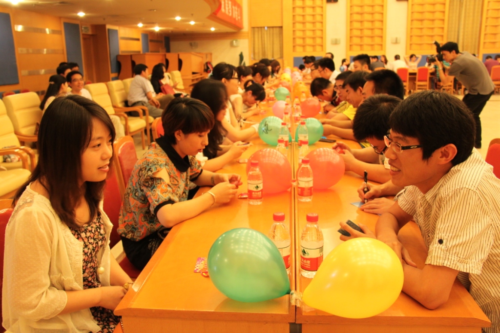 百颗年轻的心在这里激情碰撞,青春的色彩在高空飞扬,青年朋友们相约五月,欢聚一堂。平日里忙碌的工作,也许使得年轻的朋友们错过了交友的时机,而这一次的青年联谊会正是为大家提供了一个展现自我、增进交流、相互了解的平台,更希望青年朋友们能在这次难得的机会中擦出爱的火花。本次活动得到了院领导的大力支持和广大青年朋友的积极拥护,由华航公司团支部承办,来自院12家单位的23名单身青年参加了此次活动。活动以“8分钟约会”为主线,中间穿插互动小游戏,既为大家提供了独处的机会,也在游戏中拉近了朋友们的距离。男士们向心中的“她”勇敢的表达着情意,女士们也细心寻找着那个百里挑一的“他”。月老牵线,天赐姻缘,3对嘉宾现场牵手成功,收获了他们的爱情,其他的朋友们也都互换了联系方式,期待着美好的缘分。各央企的团委也通过此次协作,建立了深厚的友谊,为今后的交流与合作打下了坚实基础。