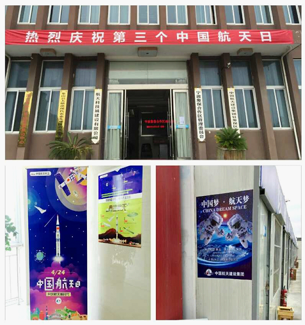 科技城公司做好办公区和工地的“中国航天日”的宣传工作。张贴海报和横幅,展示航天事业发展成就,弘扬航天精神,提升航天文化在当地的影响力。