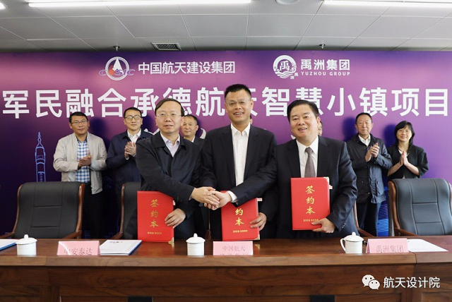 5月8日,中国航天科工七院与禹洲集团就承德航天智慧小镇项目签订合作协议,依托承德自然资源、地理优势、历史文化等方面,在新型航天科学技术研发和应用的基础上进行深入合作。七院总经理、党委副书记李治国,禹州集团董事局主席林龙安,航天建筑设计研究院有限公司总裁、临时党委副书记马向东等领导出席签约仪式。