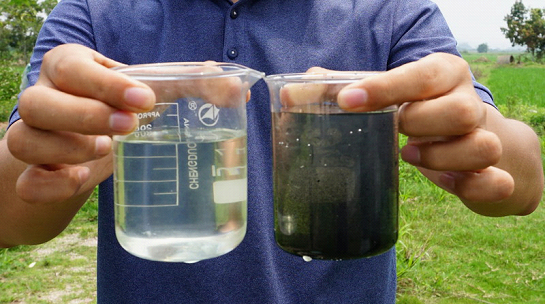 在四九镇永庆村,处理前发污发臭直接流入风水塘的生活污水,处理后水质清澈透明,无色无臭,肉眼看上去与自来水无异,处理后的水流入农田灌溉渠供村民们灌溉使用。江门航业总经理雷鸣介绍,村级站点处理后的排放水质为国家一级B标准,镇级站点的排放水质为国家一级A标准,执行了广东省的污水排放标准。