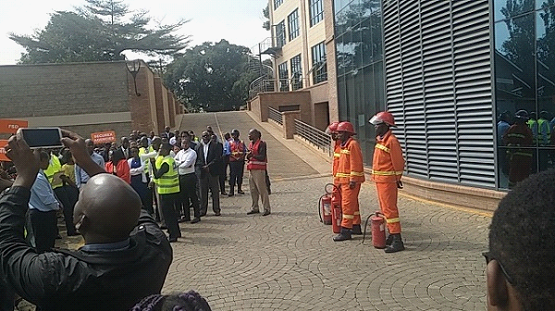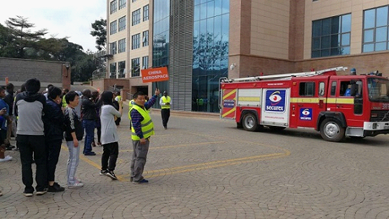 为此,肯尼亚公司积极与办公楼物业管理公司沟通,于6月11日上午10点进行了一场消防演练活动,现场统一指挥部署,有序疏散人群,活动持续半小时,过程紧张有序,效果理想。