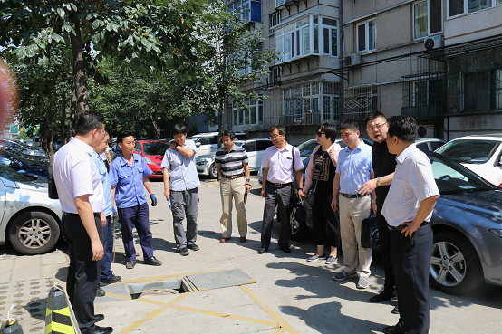 二院检查组一行听取了七院本部2018年防汛工作部署情况汇报,查阅了防汛管理档案资料,查看了院区防汛隐患整治现场和排水设备的操作演示,详细询问了排水设备的功率和排水流量等信息。随后检查组赴中航天办公院区查看了院区排水和防汛物资配备情况。