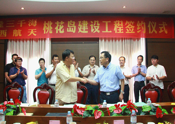 7月3日至4日,中国航天科工七院陕西航天建筑工程有限公司党委书记、董事长翟再文,副总经理董水能、王明虎及党群部相关人员一行,赴广西北海天隆房地产开发有限公司,成功签约5.4亿三千海桃花岛项目。