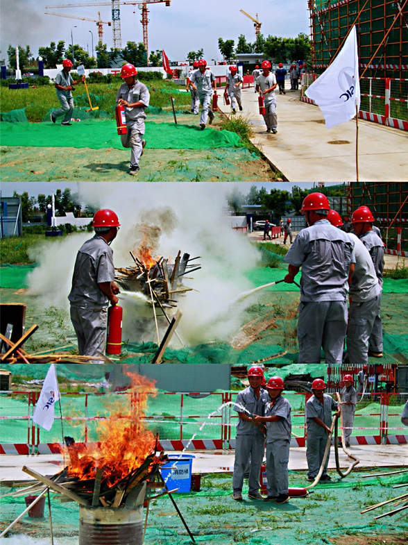 随后,项目部管理人员进行了一次消防应急演练。演练模拟了施工现场有人违反规定吸烟,随意丢弃烟头引发火灾的情景。整个演练过程组织有序、分工到位、有条不紊,取得了明显的效果。演练结束后,各位代表参观了现场安全体验区、样板展示区并对施工现场绿色文明氛围进行了观摩。