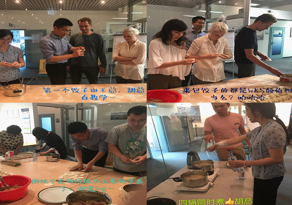 WKS公司总经理王志和华航环境副总裁胡怡作为总指挥,组织大家采购食材、准备饺子馅、和面、擀皮儿、包饺子、煮饺子,井井有条,忙的不亦乐乎。不得不说,饺子作为中国传统美食,在国外也是非常受欢迎的,大家吃着自己亲手包的饺子脸上不自觉洋溢着幸福的微笑。