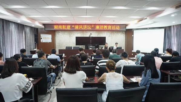 8月9日下午,中国航天科工七院湖南航天建筑工程有限公司根据公司2018年纪检监察工作计划,结合“正作风 严纪律 勇担当”主题纪律教育在公司21楼会议室开展了一期“清风讲坛”廉洁教育活动。公司党政领导班子、全体党员、中层以上本级管理干部以及关键岗位人员共60余人参加了活动,活动由公司纪检监察室主任唐倩主持。