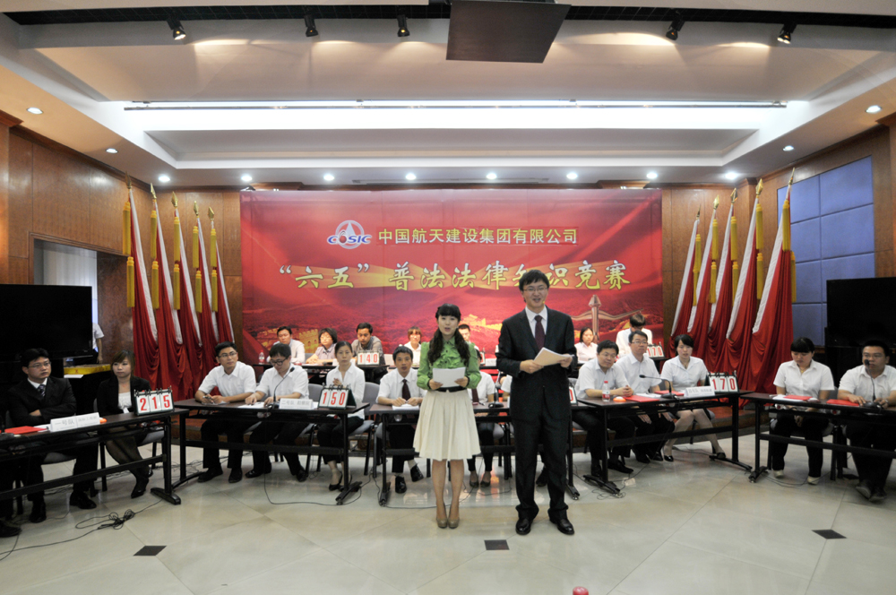 为深入开展“六五”普法宣传教育,进一步增强广大干部职工的学法、懂法、守法意识,由七院法律办公室承办的法律知识竞赛于9月12日下午在三楼礼堂隆重举行。七 院党委书记高峰,党委副书记、纪委书记、工会主席李秀芬,总经济师、总法律顾问樊伟,七院老书记、现任院特聘顾问战立胜,院外聘法律顾问李显琴律师担当此次竞赛的评委。总承包部、国际工程部、物业公司、勘察院、中航天、陕西航建、湖北航建、华航公司等8家单位作为参赛队伍参加了现场竞赛。