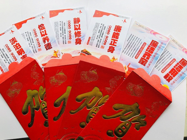 公司党总支纪检委员李大鹏带领纪检监察部副部长唐倩,把一个个厚实的“廉洁红包”郑重地送到各级干部手中,也把公司党总支对各级干部新年的嘱托与祝福传递到了每个人心里。