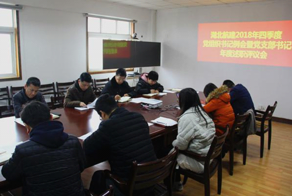 1月18日,航天建设所属湖北三江航天建筑工程有限公司召开2018年四季度党组织书记例会暨党支部书记年度述职评议会。公司党委领导,党支部书记,党群、纪检、办公室等部门负责人、党员代表、职工代表共20余人参加会议,会议由党委副书记、纪委书记黄理春主持。