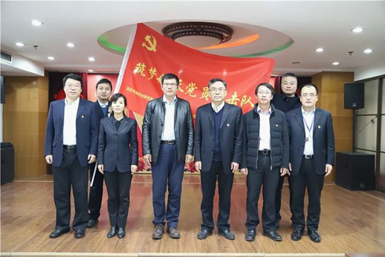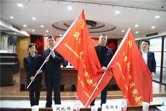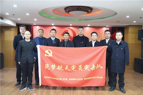 李春朴、谢明娟共同为筑梦航天党员突击队进行了授旗。210所基地保障中心主任、筑梦航天党员突击队队长赵晓伟就党员突击队工作表决心、表态度。随后党员突击队队员进行庄严宣誓。