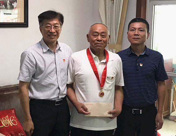 公司领导首先来到退休老党员家中,与他们逐一交谈,一起回顾100年来中国共产党的光辉历程和辉煌成就,追忆他们当年参与三线建设,艰苦创业、努力拼搏的奋斗人生,为他们佩戴“光荣在党50年”纪念章,对他们为公司发展壮大全身心做出的贡献表示崇高敬意。据统计,截止2021年7月1日,公司具有50年以上党龄的老党员共有16名,老党员彭能忠党龄达到60年。
