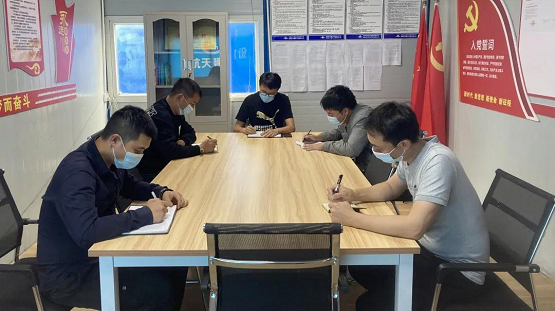 河南航建101项目党支部组织开展学习党的十九届六中全会精神专题学习,号召广大党员干部更加紧密地团结在以习近平同志为核心的党中央周围,全面贯彻习近平新时代中国特色社会主义思想,大力弘扬伟大建党精神,把全会精神化作干事创业的强大动力,聚焦项目建设抓落实,精神赋能担责任,紧盯任务不放松,攻坚克难勇担当,坚决完成目标任务,为开创河南航建改革发展新局面添动能。