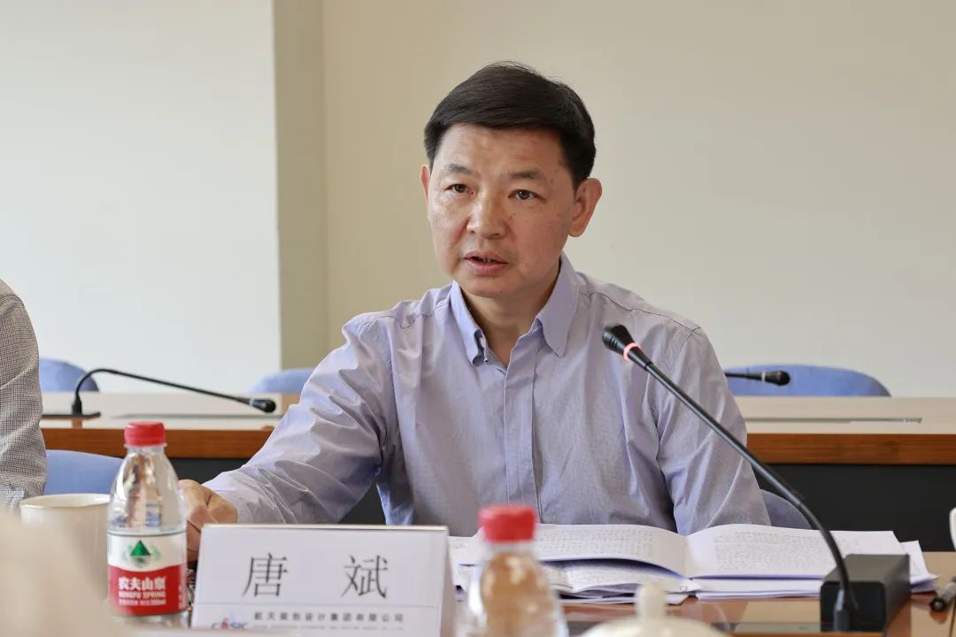 唐斌参观了航天建设所属航天设计展厅,听取了航天建设相关工作汇报,全面了解了航天建设发展历程、主要业务等。