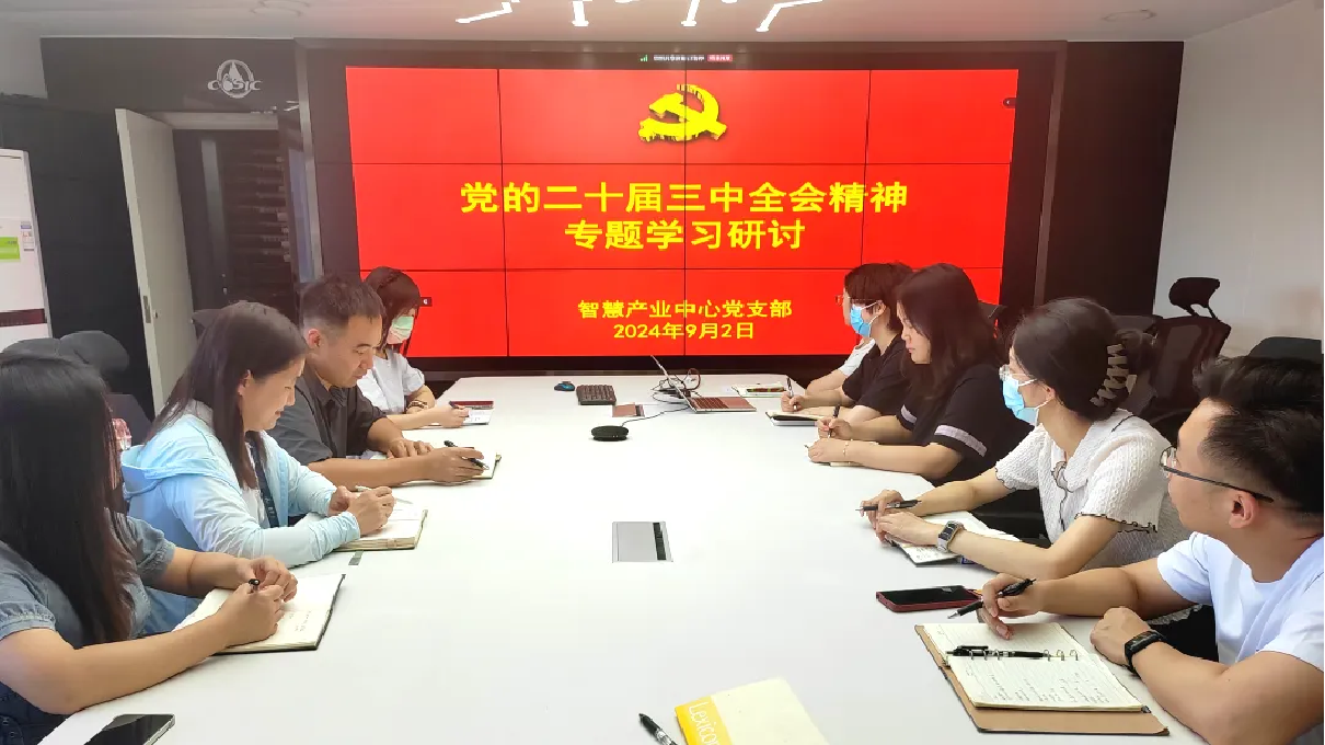 华航环境党委认真部署学习贯彻党的二十届三中全会精神,号召各党支部将学习全会精神与完成全年目标任务深度融合。智慧产业中心党支部深刻领悟加快发展新质生产力的战略意义,坚持学以致用、学用结合,以全会精神指导发展实践,用数字技术、绿色技术提升传统产业,以钉钉子精神狠抓经营生产任务。