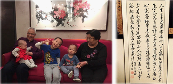 (父母与小孙子及重孙女 | 父亲自勉书法)