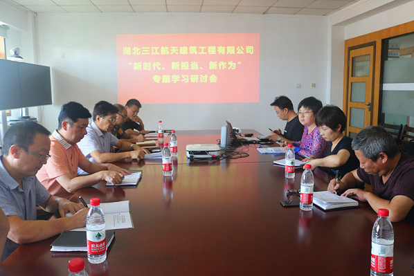 9月7日下午,中国航天科工七院湖北三江航天建筑工程有限公司召开党委中心组学习扩大会,围绕“新时代新担当新作为”开展专题研讨。会议由公司党委书记董事长李德贵主持,公司领导、助理级领导、本部部门负责人参加了会议。