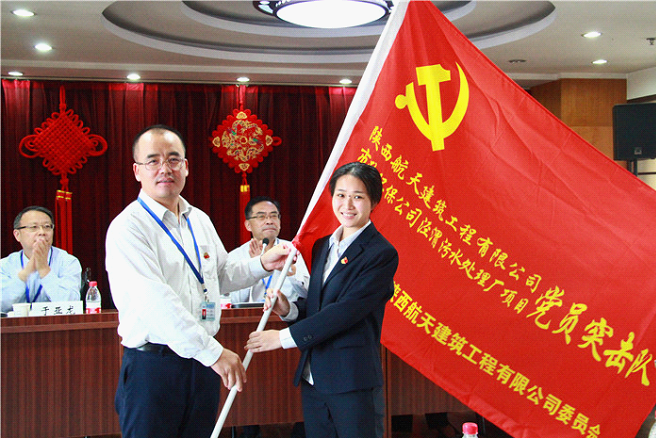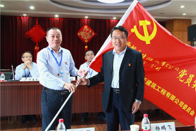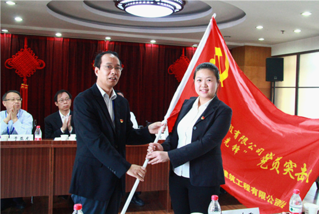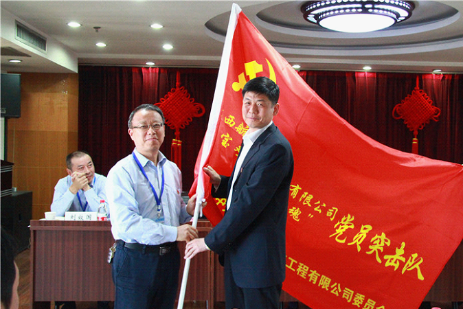 谢明娟宣读了公司党委《关于命名公司级党员突击队的通知》(党字〔2018〕55号),与会领导分别给第二公司西部创新港项目党员突击队、第三公司北海桃花岛项目党员突击队、第五公司山水怡居项目党员突击队、建筑安装公司十六项目部沙井村二期项目党员突击队、建筑安装公司十八项目部乐叶光伏项目党员突击队、宝鸡公司“铸魂”党员突击队、市政环保公司泾渭污水处理厂项目党员突击队、蚌埠分公司党员突击队、装饰公司“先锋”党员突击队等9支党员突击队授旗。