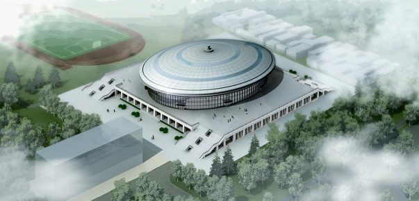 为了彰显蒙元文化,建筑方案汲取蒙古族服饰元素,以蒙古族传统帽子造型为原型,将建筑外轮廓设计为椭圆形,充分利用现代材料与设计手法进行全新的诠释,体现天似穹庐,环视大地的蒙古族气息。而建筑内部设计为长方形,诣将“天圆地方”的传统对称美学运用在大体量建筑上,建筑剖面更与古代钱币相似,使建筑造型不仅与“财经大学”校名呼应,而且充满蒙古族传统气息,庄重大气。2016年体育馆项目竣工后,便成为当地标志性建筑。这个项目的圆满完成也进一步的拓展了大连分院的设计市场。