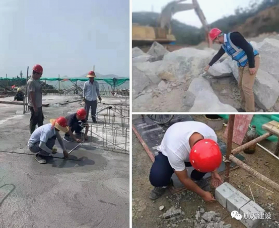 突击队成员多为80后,最小的95年出生,他们施工经验丰富,团队凝聚力强,对珠海建筑业市场也较为熟悉,在接到委派指令后,不畏岛上恶劣的生活环境和艰苦的生产条件,从2018年11月底到达桂山岛,开展项目施工准备工作。由于得到甲方的认可,在中标项目主体设计施工同时,团队还承接了项目三通一平的开荒建设。