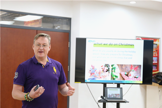 16:00点,Andy老师准时到场,沙龙活动正式开始。通过简单的互动介绍达到暖场的效果,很快就进入了本次的正题—Christmas English Corner。Andy老师通过介绍圣诞节的由来、西方圣诞节的习俗以及分享各个国家自己圣诞节的文化等内容,迅速让小伙伴深深吸引其中,小伙伴们也在活动中频频与Andy老师互动,在了解西方文化的同时,更是勇敢的去表达、去沟通,不断提升自身的英语水平。