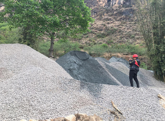 技术员小杨在清点进场的砂石、标砖等建筑原材数量,认真的做好记录,同时收集进场材料的实验报告。