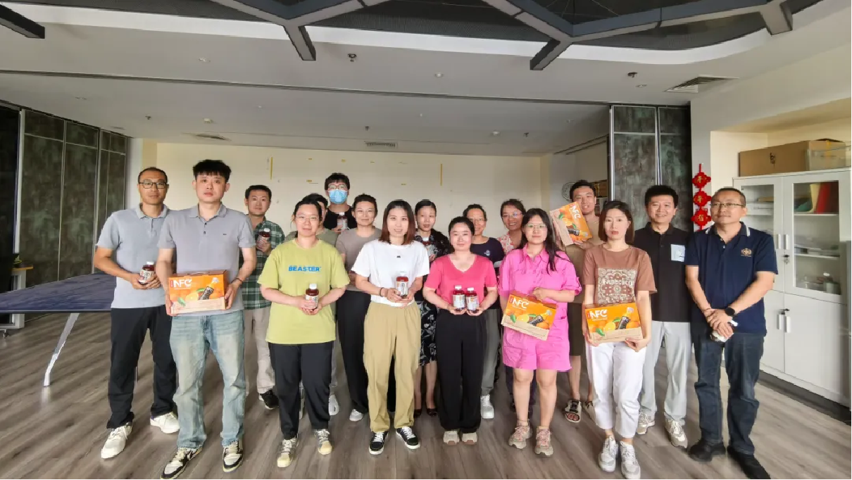 中瑞公司将饮料、绿豆、西瓜等防暑降温食品及防蚊液、消毒剂、洗衣液等日用品发放到职工手中,确保人人享健康、清爽过一夏。