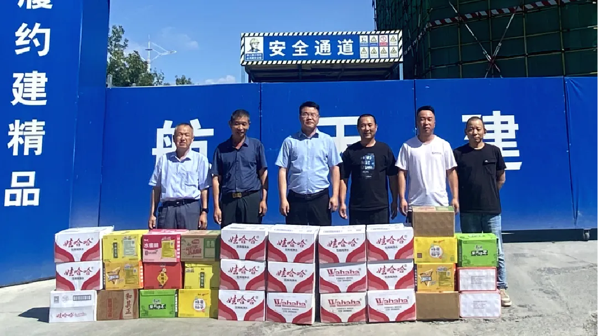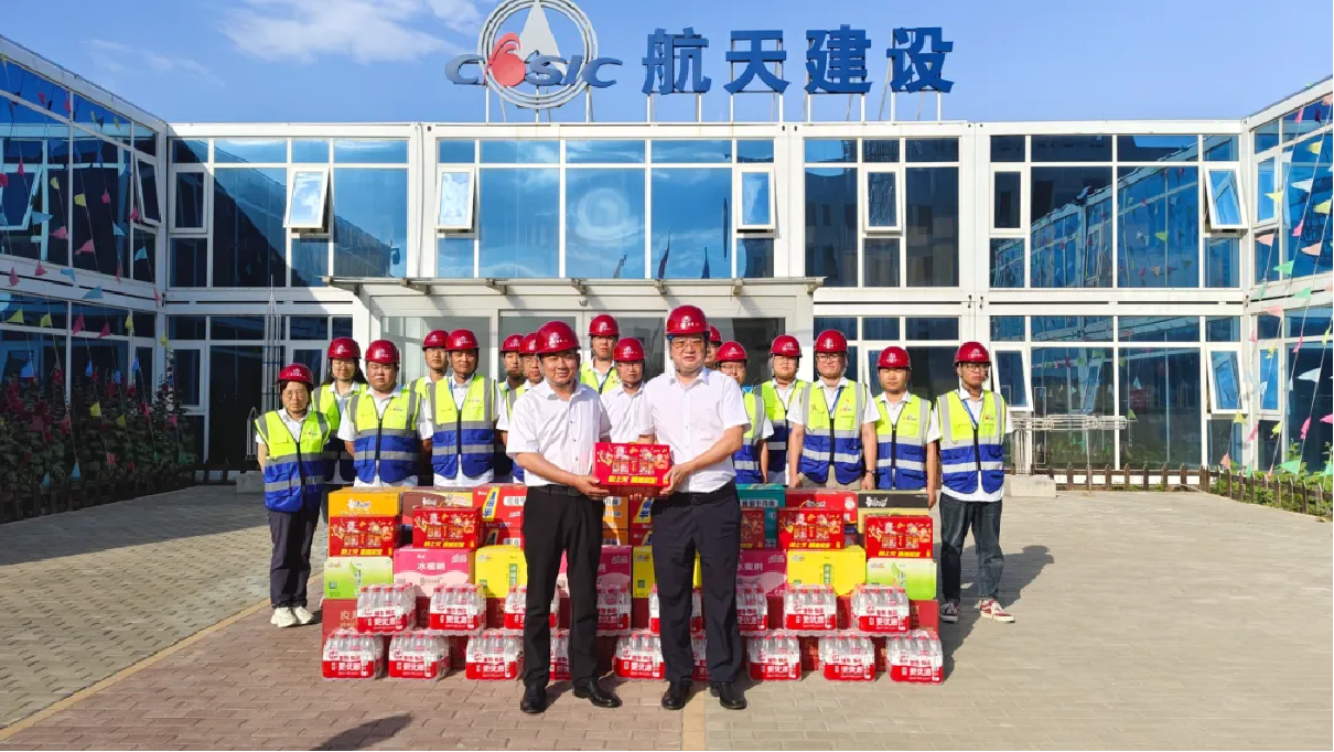 中航天公司慰问项目一线职工,送去矿泉水等防暑降温物资,嘱咐大家注意安全生产,发扬航天精神,打造精品工程,为高质量发展贡献力量。