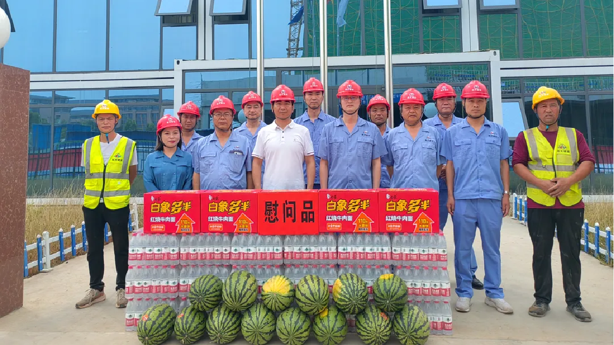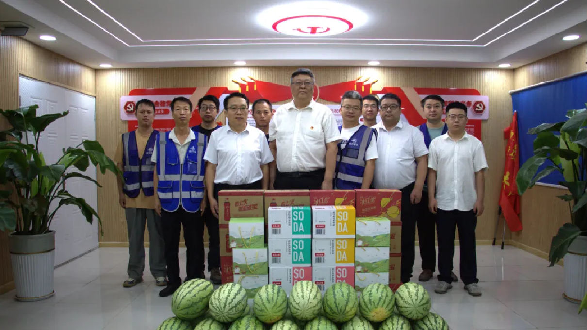 陕西航建为项目一线职工送去矿泉水、茶饮、西瓜等防暑降温物品,叮嘱项目部进一步关心职工身心健康,做好高温天气下的各项防护保障工作。