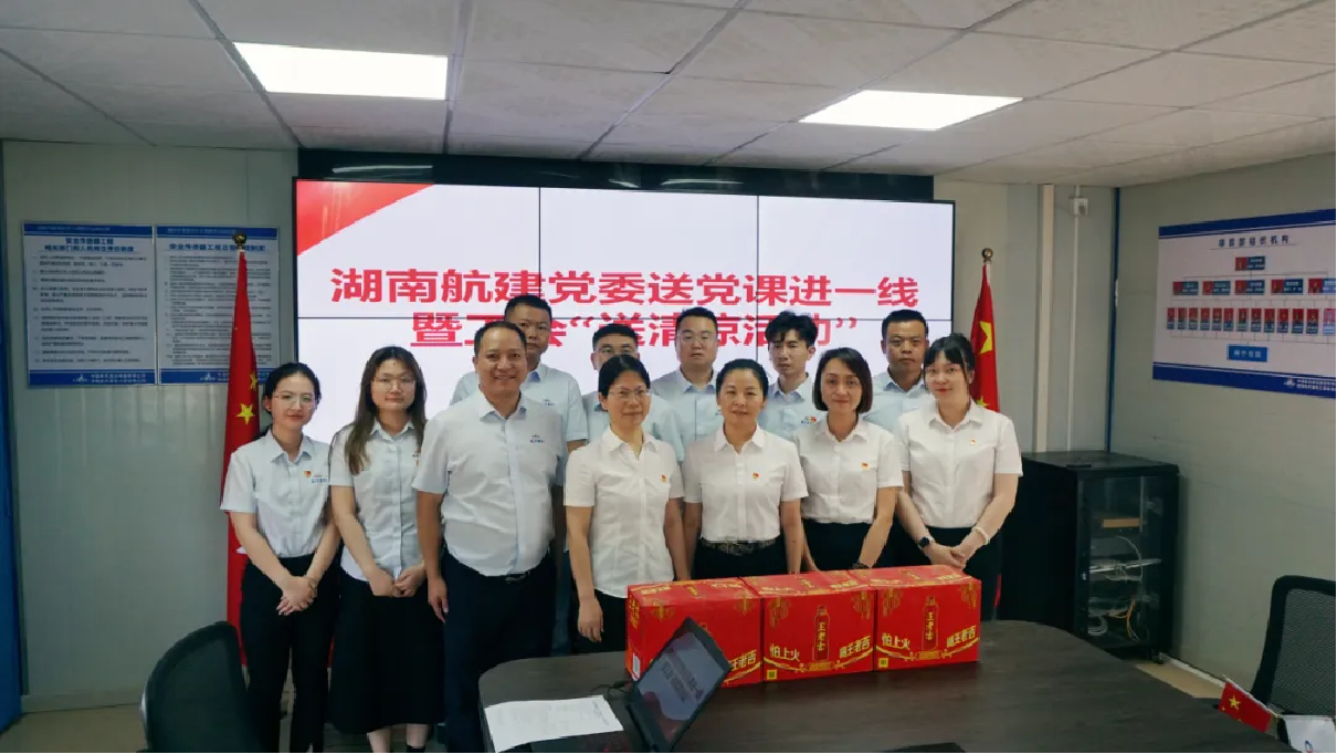 湖南航建慰问项目一线职工,为大家送去慰问品,公司工会协同安全保障部为大家讲授安全课和夏季防暑知识,协调户外工作时间和歇凉场地等。