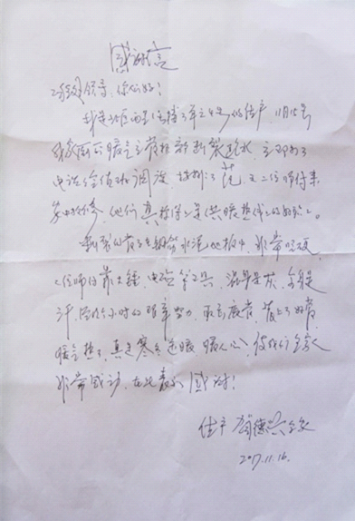 供暖季的到来,就是七院北京市航云建筑工程有限责任公司维修一队对住户家中温暖守候的时刻。这不!16号一大早上,公司又收到了一封来自住户的感谢信: