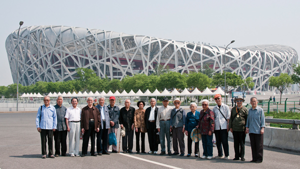 院离退休干部参观鸟巢 5月8日,院人力资源部组织离休干部参观游览2008年北京奥运会标志性建筑“鸟巢”和“水立方。”参与的离休干部年龄最大的有88岁,最小的也80有余。为了保证每位老领导的安全,人力部精心准备了各项用品、安排了电瓶车,还请了医护人员陪同。